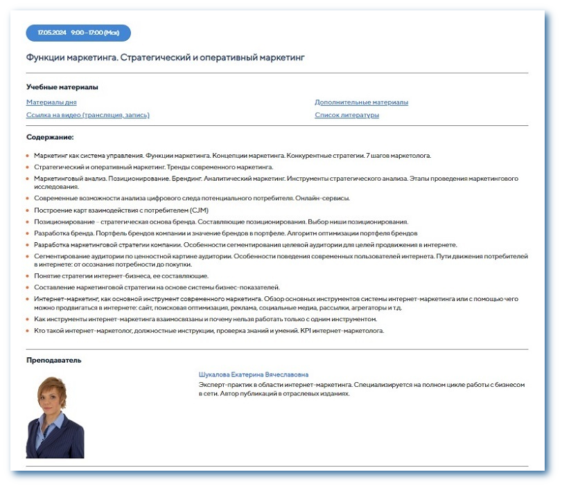 Курс Mini MBA оставил у меня исключительно положительные впечатления. Особенно хочу отметить Дмитрия Михайлова и Екатерину Шукалову. Их модули были не только интересными, но и очень доступными для понимания.